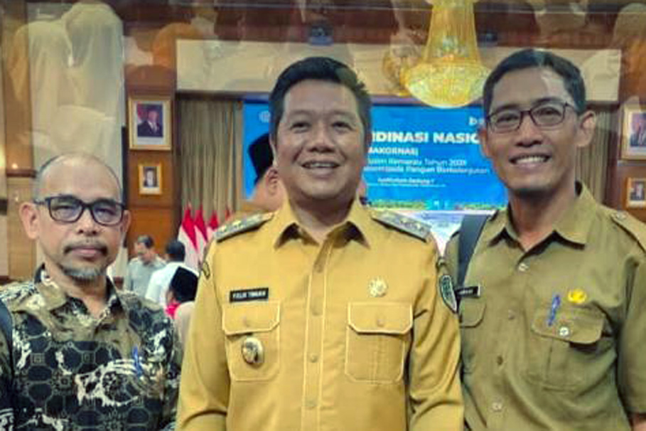 Wakil Bupati Kabupaten Barito Utara, Felix Sonadie Y. Tingan, A.Md., di dampingi Kepala Dinas Pertanian, H. Adi Haridi dan Kepala Bidang Sarana Prasarana Pertanian Jumran, saat menghadiri Rapat Koordinasi Nasional. (foto : Diskominfosandi Barut)